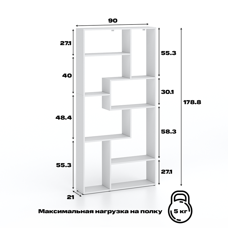 Идеально подходит для зонирования помещений — его можно использовать как элегантную перегородку, отделяющую рабочую зону от спальной или гостиной. Открытые полки предоставляют безграничные возможности для демонстрации и хранения: книг, декора, комнатных растений, коллекций, фотографий в рамках или корзин для мелочей.