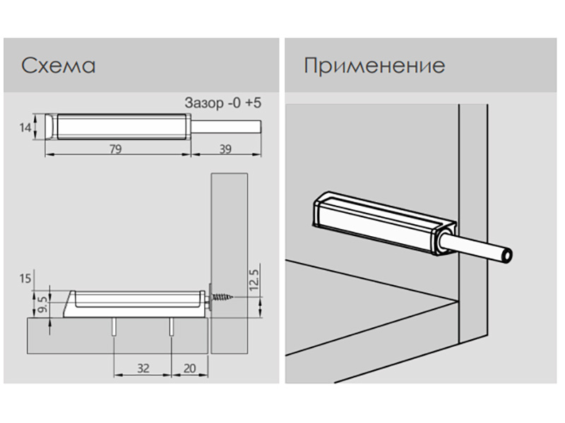 Механизм позволяет открывать и закрывать фасады без мебельных ручек с помощью легкого нажатия, а магнит удерживает фасад от излишне резкого открытия.